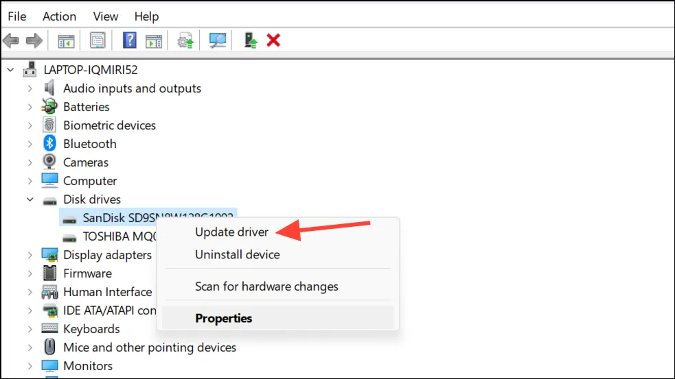 - Щелкните правой кнопкой мыши диск и выберите в меню «Обновить драйвер».