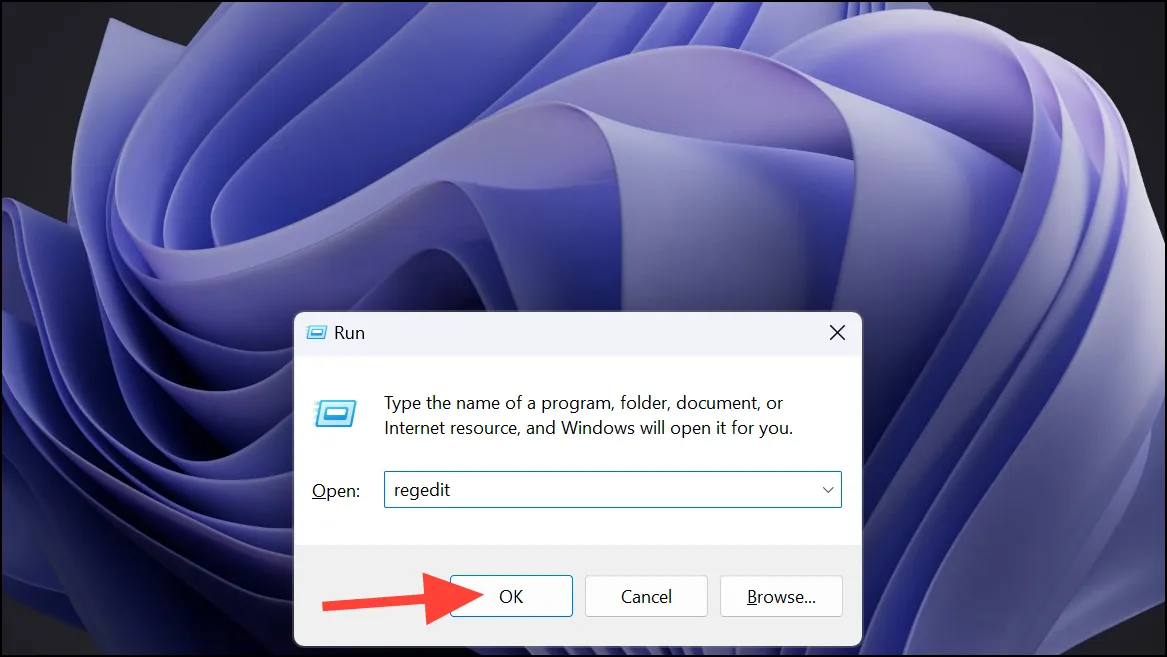 regeditв окне «Выполнить» и нажмите Enter, чтобы открыть редактор реестра.