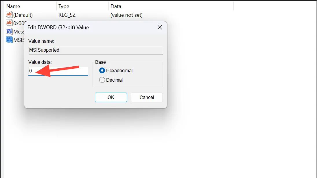 - На правой панели перейдите к параметру «MSISupported» и дважды щелкните его.