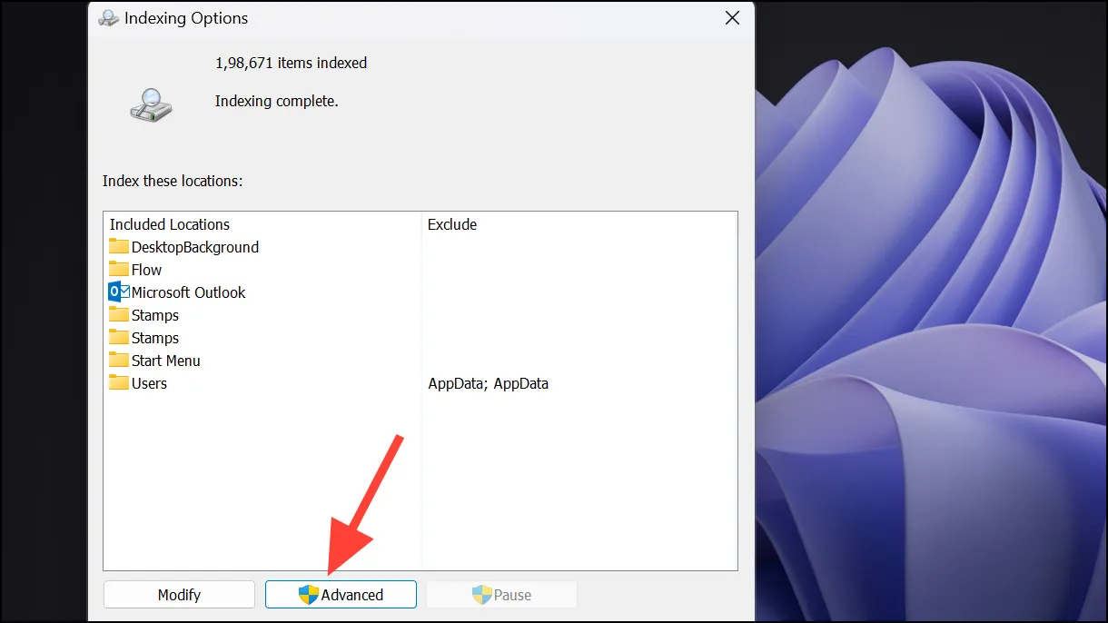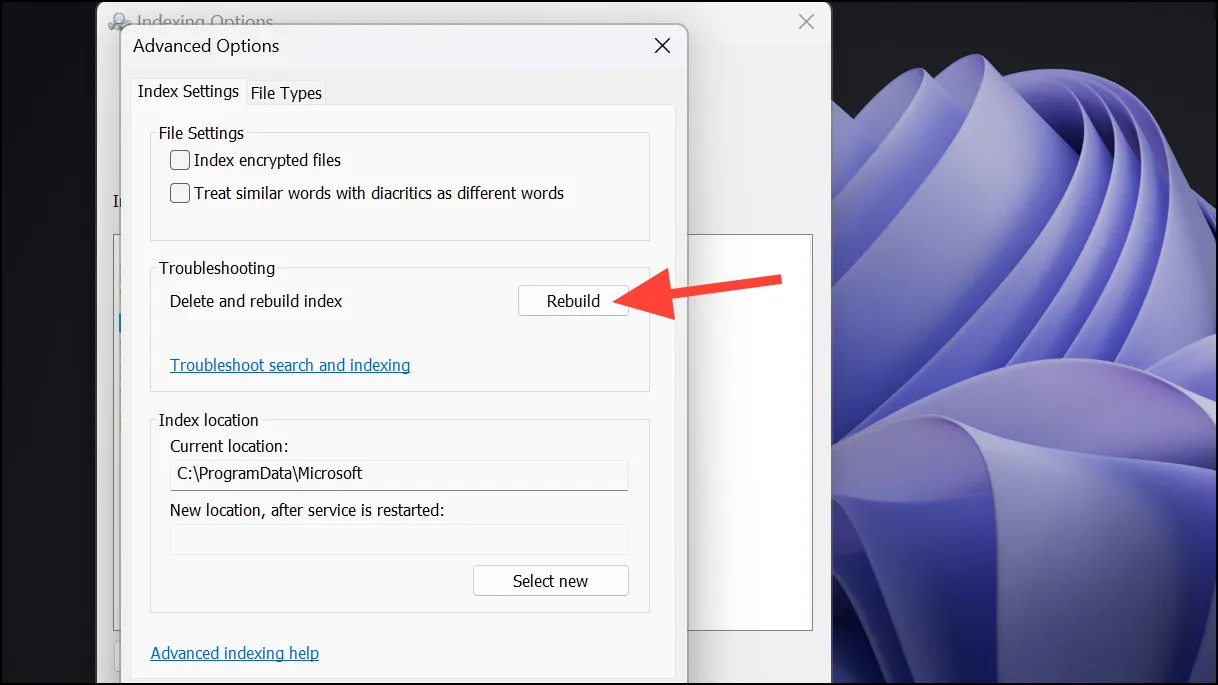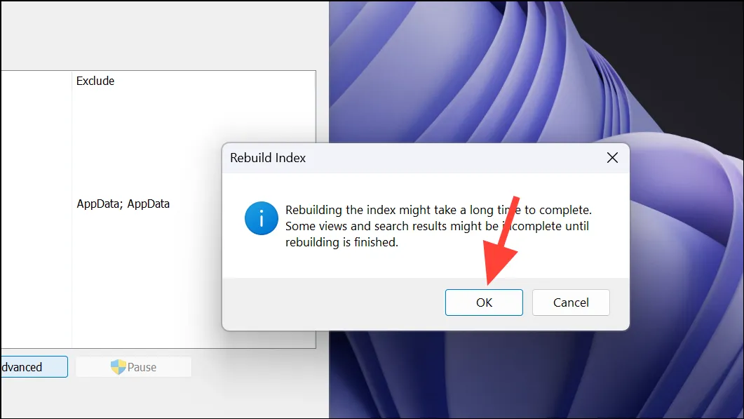 4. Перестройте индекс поиска и отключите поиск Windows.