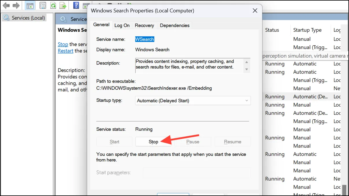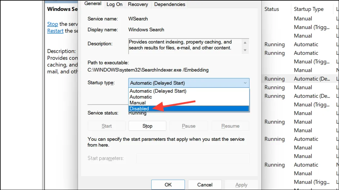 Если перестроение индекса помогло с использованием диска, но после перезагрузки системы вы вернетесь к исходной точке, вам нужно будет отключить поиск Windows, поскольку это означает, что существует проблема с поиском, которая приводит к высокой загрузке диска на вашем ПК с Windows 11; Перестроение индекса может помочь только временно, до следующей перезагрузки системы.