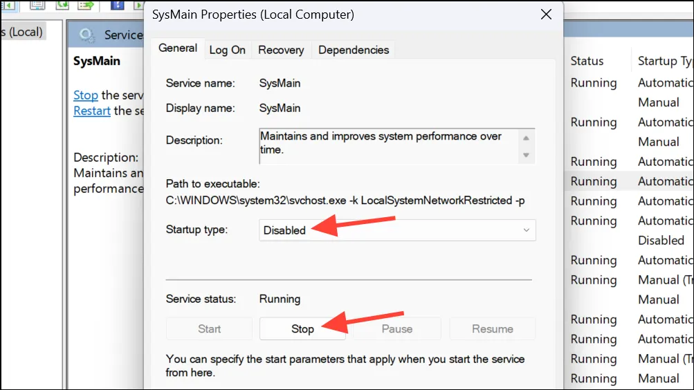 SysMain (также известный как Superfetch) — это служба Windows, которая предварительно загружает часто используемые приложения в оперативную память для повышения производительности системы. Однако он часто может занимать дисковое пространство, что по иронии судьбы приводит к снижению производительности вашего ПК.