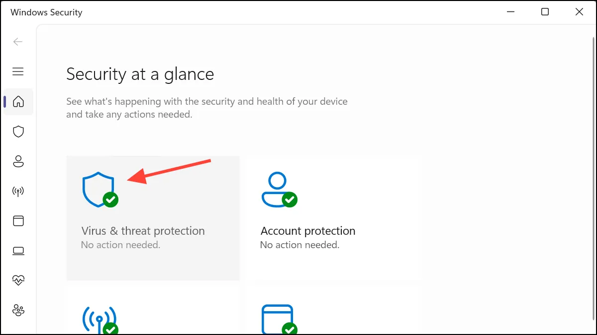 - Перейдите в раздел «Защита от вирусов и угроз».
