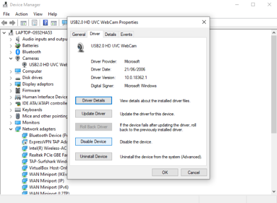 Если это не работает, отключите и удалите драйвер. Выбрав устройство, щелкните правой кнопкой мыши и выберите «Отключить устройство», затем «Удалить драйвер».
