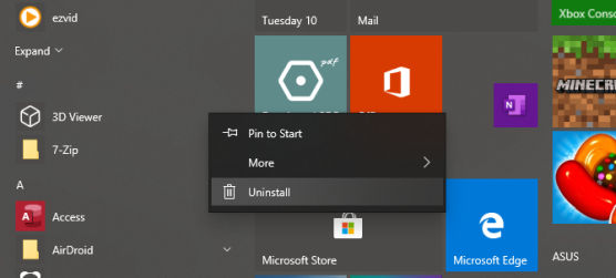 Просто найдите программное обеспечение в меню «Пуск», щелкните правой кнопкой мыши и выберите «Удалить».