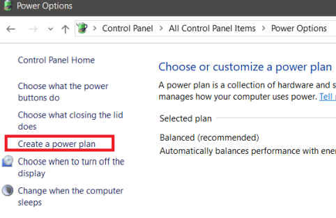 - На новой вкладке нажмите «Создать план электропитания» с левой стороны.