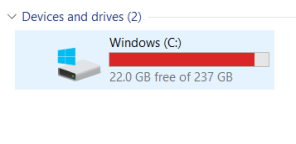 Вы можете проверить свой объем памяти, нажав клавишу Windows, напечатав ПК и нажав Этот ПК.