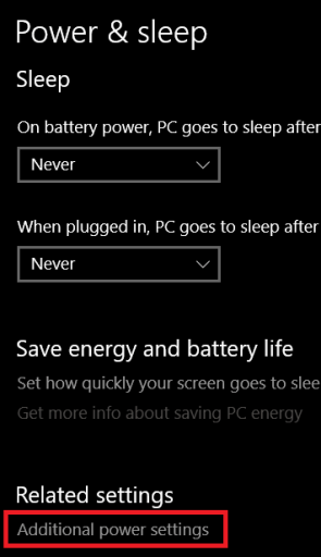 - Затем нажмите клавишу Windows типа Power & Sleep в меню поиска Windows.