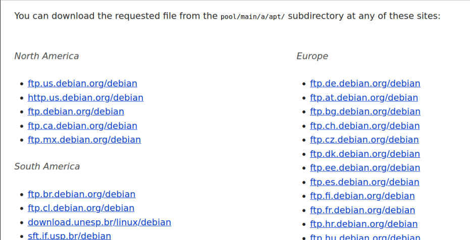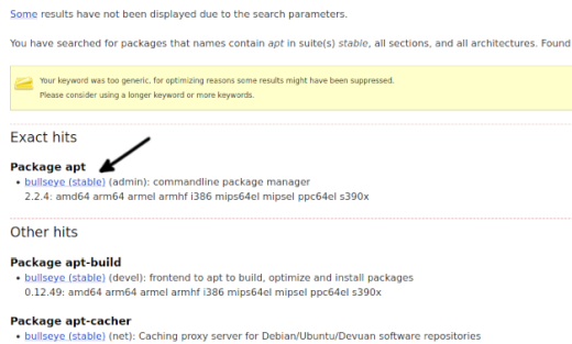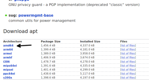 Вы будете перенаправлены на страницу со списком пакетов. Нажмите на ссылку пакета apt, относящуюся к вашей версии Debian.