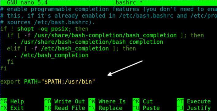 Чтобы сделать это решение постоянным, откройте файл. bashrc в вашем домашнем каталоге с помощью текстового редактора, такого как nano или vi.