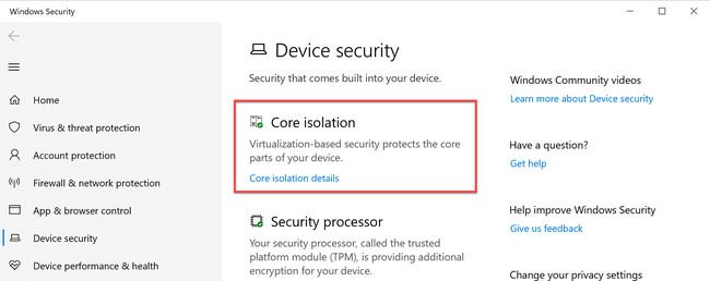 5. В разделе « Изоляция ядра» щелкните « Детали изоляции ядра» .