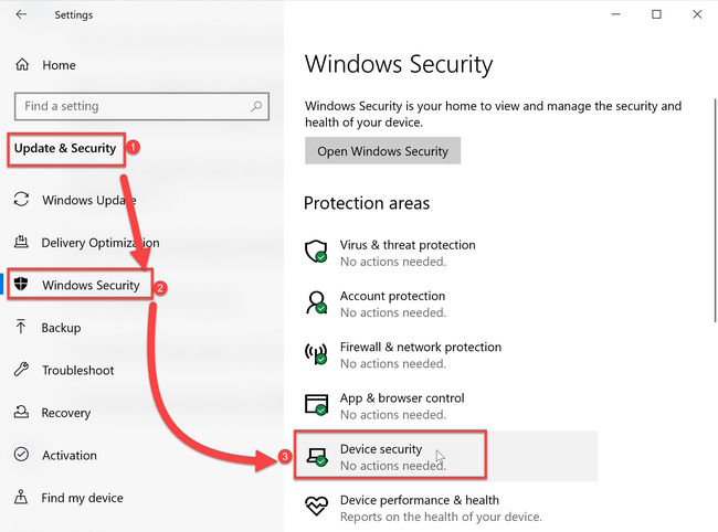 4. На правой панели выберите Device Security. Это откроет другое окно.