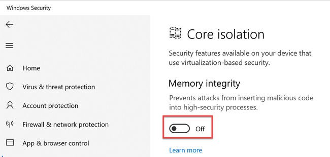 Функция изоляции ядра, целостность памяти , может быть включена для предотвращения вставки вредоносного кода в процессы с высокой степенью защиты.