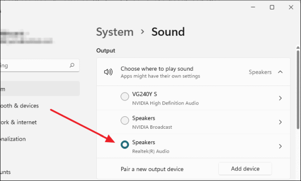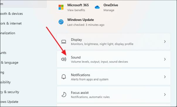 Если вы по-прежнему не слышите звук, возможно, выбран неправильный аудиодрайвер. Это может происходить часто, если у вас установлено более одного аудиодрайвера. В этом случае вернитесь в меню настроек звука, нажав Windows+ iна клавиатуре, и после открытия окна настроек выберите «Звук» на правой панели.