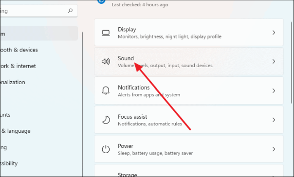 После того, как откроется меню настроек, нажмите «Звук» на правой панели.