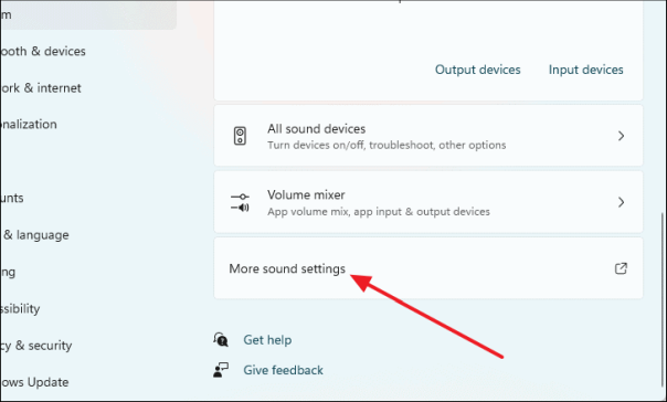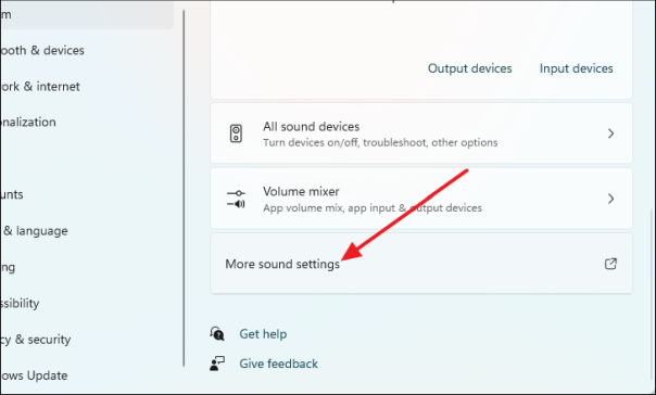 После этого прокрутите вниз до нижней части меню настроек звука и нажмите «Дополнительные настройки звука».