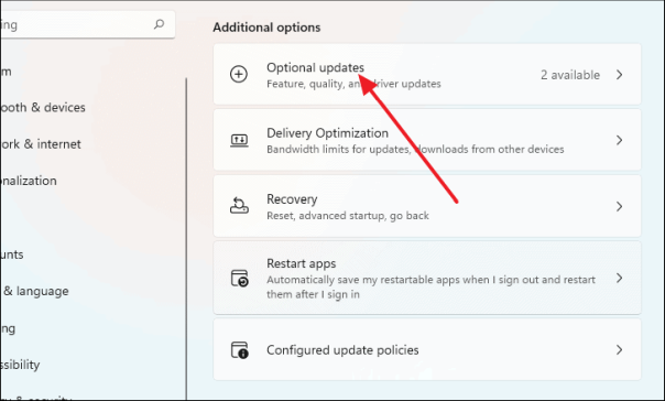 После этого прокрутите вниз и в разделе «Дополнительные параметры» вы увидите параметр «Дополнительные обновления». Щелкните по нему, чтобы открыть меню.