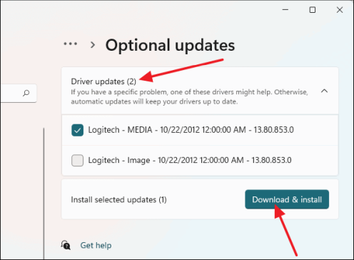 После этого нажмите «Обновления драйверов», и он покажет вам дополнительные обновления драйверов, которые вы можете установить. Установите флажок, если вы видите ожидающее обновление аудиодрайвера, и нажмите «Загрузить и установить».