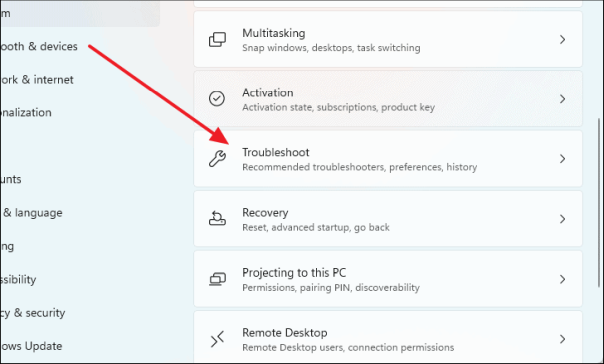 В Windows есть специальное средство устранения неполадок, которое можно использовать для автоматического обнаружения, а в некоторых случаях и для решения любых проблем, связанных со звуком. Чтобы перейти к средству устранения неполадок, сначала вам нужно открыть меню настроек, нажав Windows+ iна клавиатуре. После появления окна настроек выберите «Устранение неполадок» на правой панели.