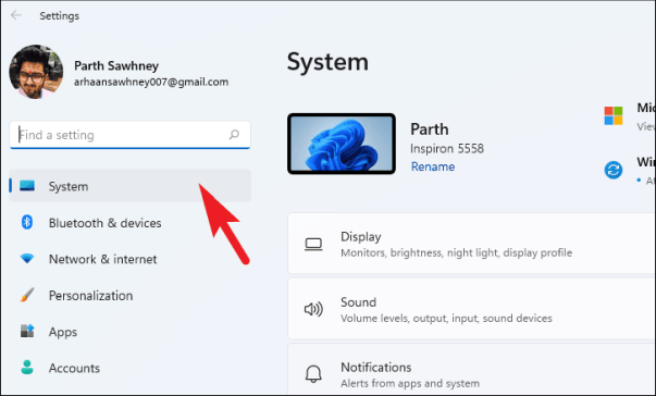 После этого убедитесь, что вы выбрали вкладку «Система» на левой боковой панели окна «Настройки».