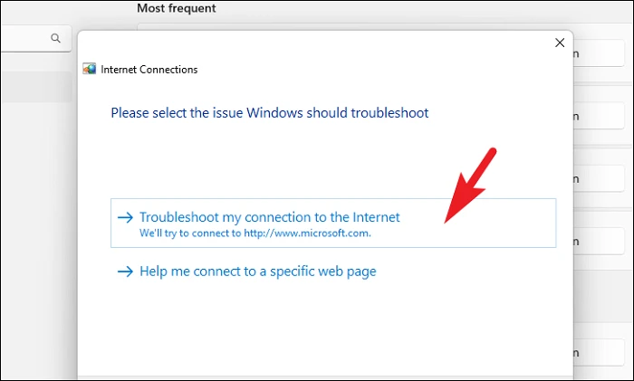 В окне средства устранения неполадок выберите параметр «Устранение неполадок с подключением к Интернету». Затем Windows проверит наличие проблем и сообщит о них, если обнаружит их.