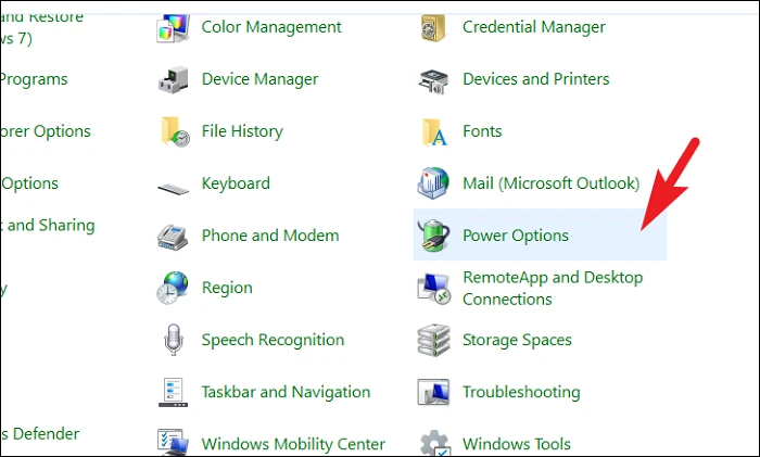 Затем нажмите «Электропитание» в окне панели управления.