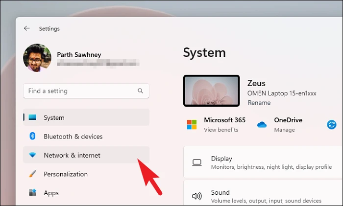 После этого нажмите «Сеть и Интернет» на левой боковой панели.
