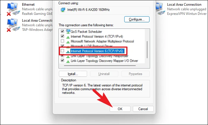 Если в настройках адаптера включен IPv6, это также может вызвать проблемы с сетевым подключением, и это не помешает проверить.