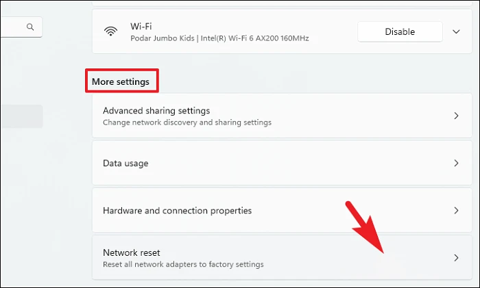Теперь в правом разделе нажмите на плитку «Дополнительные настройки сети», чтобы продолжить.