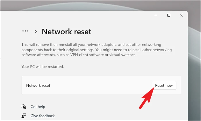 После этого нажмите кнопку «Сбросить сейчас». Это перезагрузит ваш компьютер.