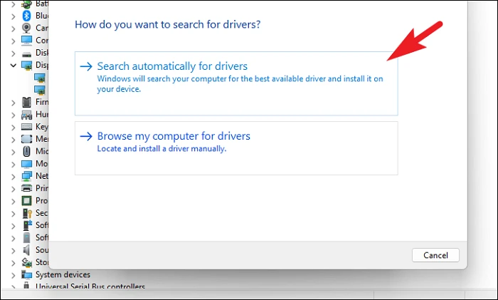 Теперь нажмите «Автоматически обновлять драйверы», если вы хотите, чтобы Windows нашла драйвер для установленного компонента. В противном случае, если у вас уже есть загруженный пакет, нажмите «Выполнить поиск драйверов на моем компьютере».