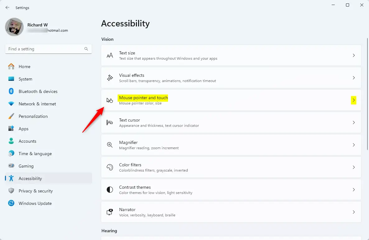 Как изменить цвет индикатора указателя мыши в Windows 11