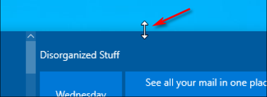 Или вы можете одновременно отрегулировать высоту и ширину, щелкнув в правом верхнем углу меню «Пуск» и перетащив мышку внутрь или наружу по диагонали.