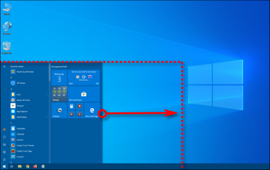 Вы также можете изменить ширину меню «Пуск» таким же образом: захватите его правый край курсором изменения размера и перетащите мышью, чтобы увеличить или уменьшить его. При изменении размера по горизонтали меню «Пуск» будет привязано к кратному размеру вашего плитки.