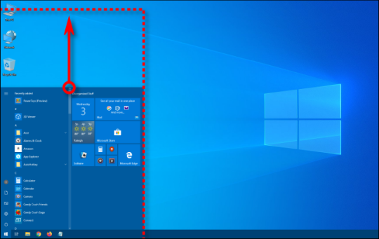 Меню «Пуск» изменит размер при перетаскивании мыши. Когда вы найдете нужную высоту, отпустите кнопку мыши, и меню «Пуск» останется таким же.