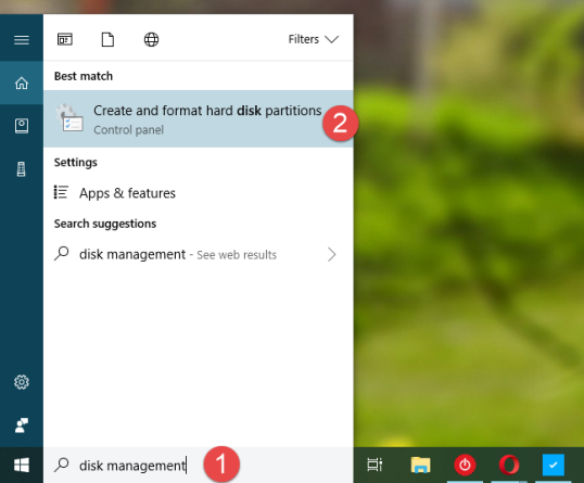 Первое, что вы должны сделать, это открыть инструмент управления дисками. В Windows 10 введите слова «управление дисками» в поле поиска на панели задач, в Windows 7 введите их в поле поиска в меню «Пуск», а в Windows 8.1 напишите их непосредственно на начальном экране. Затем в любой из этих операционных систем нажмите или нажмите «Создать и отформатировать разделы жесткого диска».
