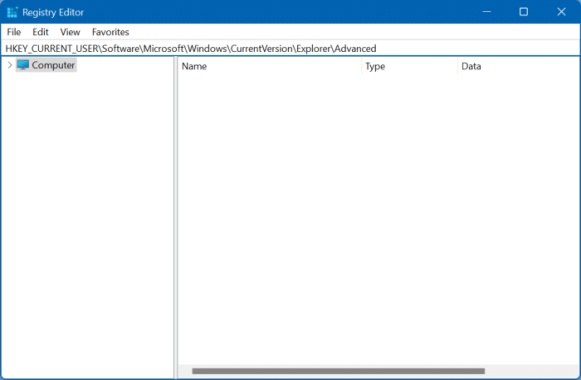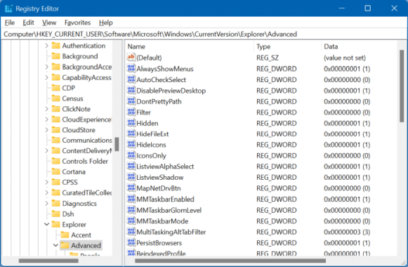 HKEY_CURRENT_USERSoftwareMicrosoftWindowsCurrentVersionExplorerAdvanced