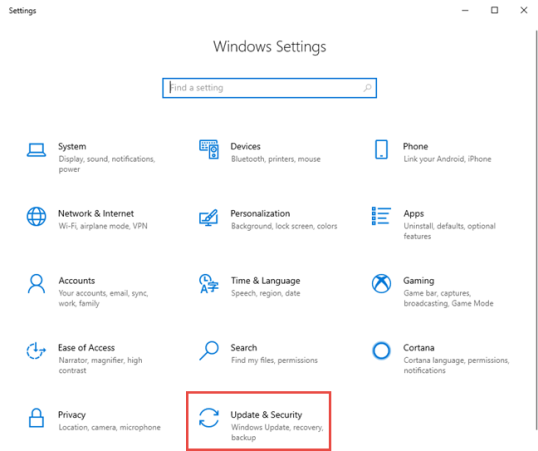 Сначала откройте приложение «Настройки» в Windows 10 (нажмите Windows + I на клавиатуре). В приложении «Настройки» перейдите в раздел «Обновление и безопасность».
