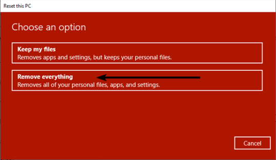 Выберите «Удалить все (удаляет все ваши личные файлы, приложения и настройки)».