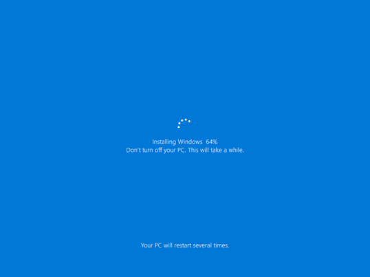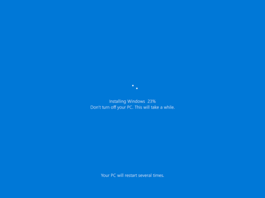 Windows 10 требуется еще одна минута или две, чтобы подготовиться. Когда это будет сделано, он автоматически перезагружает ваш компьютер.