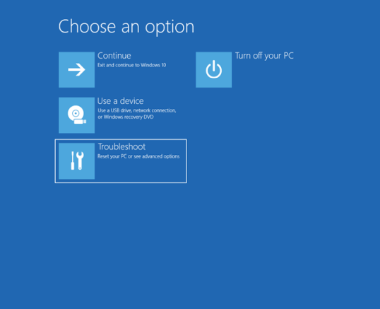 После перезагрузки Windows 10 нажмите или коснитесь Устранение неполадок.