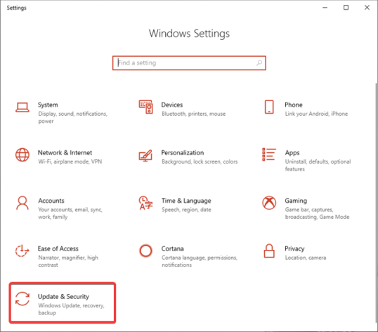 Первое, что вы делаете, это открываете приложение Настройки. Быстрый способ сделать это — нажать клавиши Windows + I на клавиатуре. В приложении «Настройки» перейдите в категорию «Обновление и безопасность».
