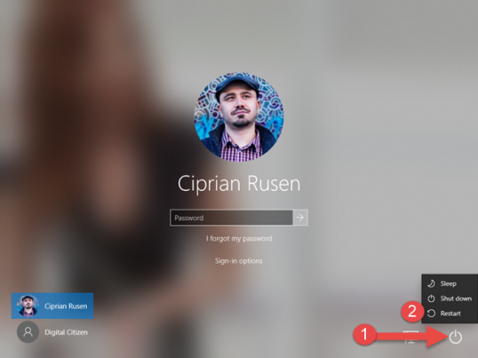 Этот метод особенно полезен, когда у вас возникают проблемы при входе в Windows 10. На экране входа в систему нажмите и удерживайте клавишу Shift, одновременно нажимая значок питания, а затем перезагрузите компьютер.