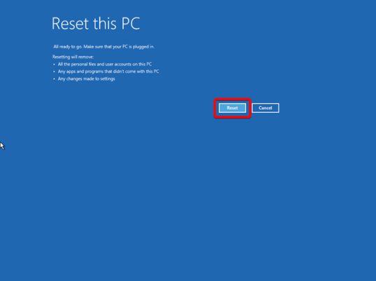 Если вы все еще уверены, что хотите выполнить сброс, нажмите или нажмите кнопку «Сброс» еще раз. Однако учтите, что это последний момент, когда вы можете передумать и отменить процесс.