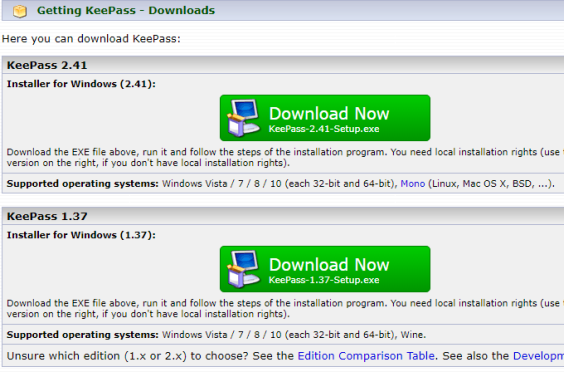Если вы перейдете на страницу загрузок KeePass, вы увидите самые последние версии Windows вверху. Всегда используйте самую последнюю версию.
