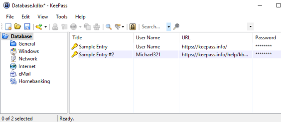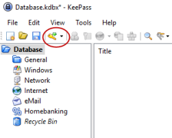 Категории находятся слева. Это те, которые KeePass предоставляет по умолчанию, но вы можете удалить их или переименовать, если хотите. Вы также можете делать неограниченное количество новых.