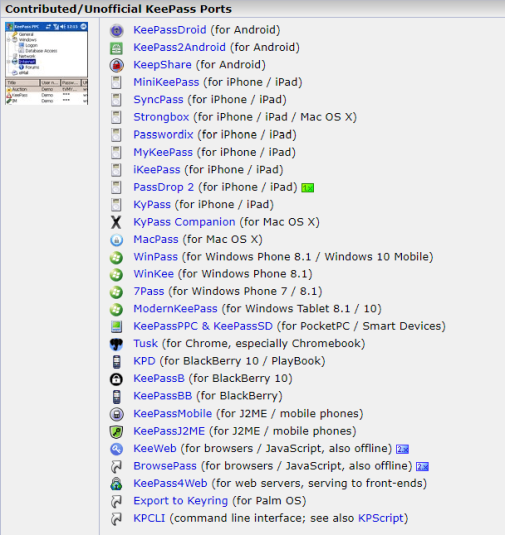 Ниже вы увидите версии KeePass для других платформ, таких как MacOS, Linux, iOS, Android и так далее. Есть даже один для Blackberry.