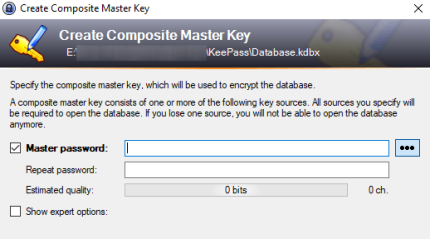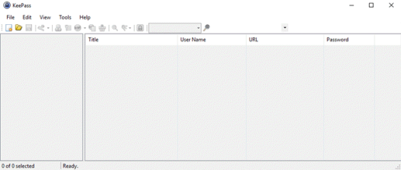 Нажмите на KeePass.exe, чтобы запустить программу, и вы увидите окно входа в систему, которое дает вам доступ к вашей безопасной базе паролей.