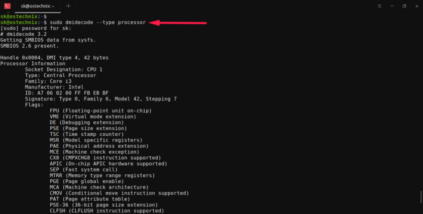 Метод 4 — получить сведения о процессоре с помощью dmidecode