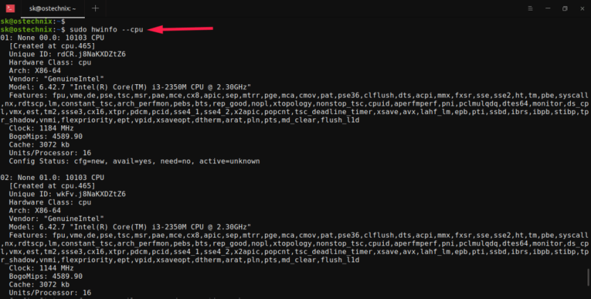 Процессор является наиболее важным компонентом компьютера. ЦП также называют микропроцессором или просто процессором. Так же, как мозг управляет человеческим телом, ЦП контролирует все части компьютера. Следовательно, центральный процессор считается мозгом компьютера. Вы можете знать основные детали своего процессора, такие как Intel Core i3, i5, AMD и т.д. Но как насчет других деталей, таких как скорость процессора, количество ядер, архитектура, размер кеша и так далее? В этом руководстве мы обсудим все возможные способы поиска информации о процессоре в Linux с помощью различных инструментов командной строки, а также графических инструментов.